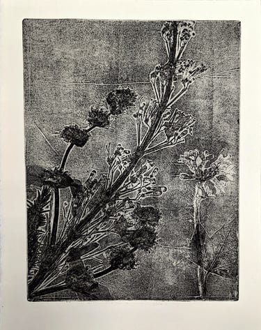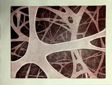 Calcografías en matrices de diversos materiales que utiliza técnicas como la punta seca, el aguafuerte, el aguatinta, el collagraph, el mezzotinto, las máculas, el barniz blando o el fotopolímero. Las diferentes estampas muestran un proceso de investigación del material desde un punto más experimental que académico.