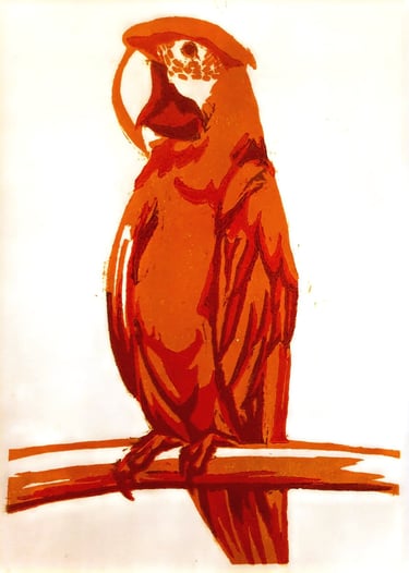 Muestra de algunos trabajos xilográficos algo académicos, inicialmente en una única tinta negra y posteriormente a color tanto con plancha perdida como con mezcla de color.