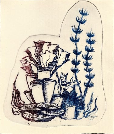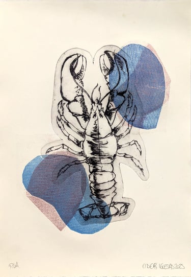 Trabajo en un área multidisciplinar, abordando técnicas tradicionales y digitales, partiendo del dibujo y saltando a la gráfica con técnicas como la xilografía, calcografía, risografía o serigrafía.