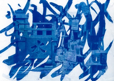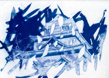 En el año 2024 cumplí uno de mis sueños al viajar a Japón. El proyecto consistió en un viaje en solitario por el país mientras realizaba un reportaje fotográfico y un cuaderno de artista que recogía composiciones de mis días de viaje. A partir de estos dos elementos comencé a producir una línea completa de piezas que van desde la cianotipia hasta el libro de artista, pasando por el grabado o la pintura.